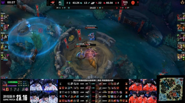[22:43]AL众人复活吃掉厄塔汗,哥哥推掉AL中路一塔,TES经济领先2k。