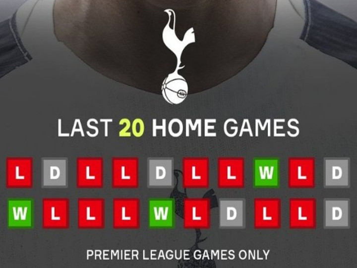 仔细观察一下热刺的得分情况,会发现一个十分有趣的现象。6个主场中,除了首轮三球大胜升班马伯恩利之后,再也无法取得任何胜利,分别负于伯恩茅斯、阿斯顿维拉和切尔西,战平狼队和曼联。