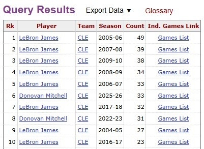 据统计,本赛季米切尔已34次砍下30+,这也是骑士队史自09-10赛季的詹姆斯以来,单赛季砍下30+最多的球员。