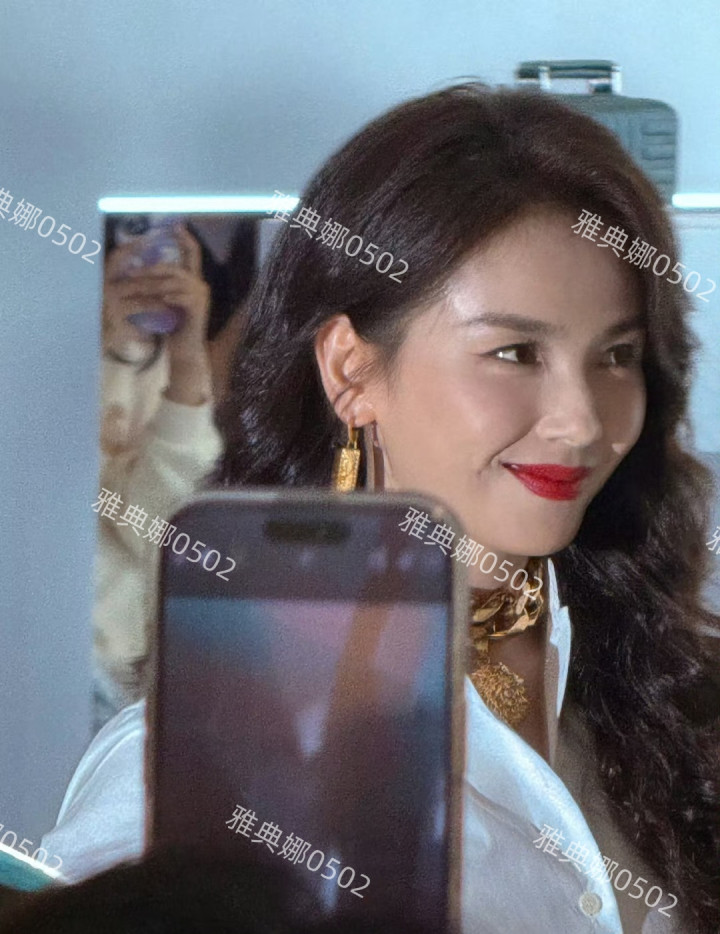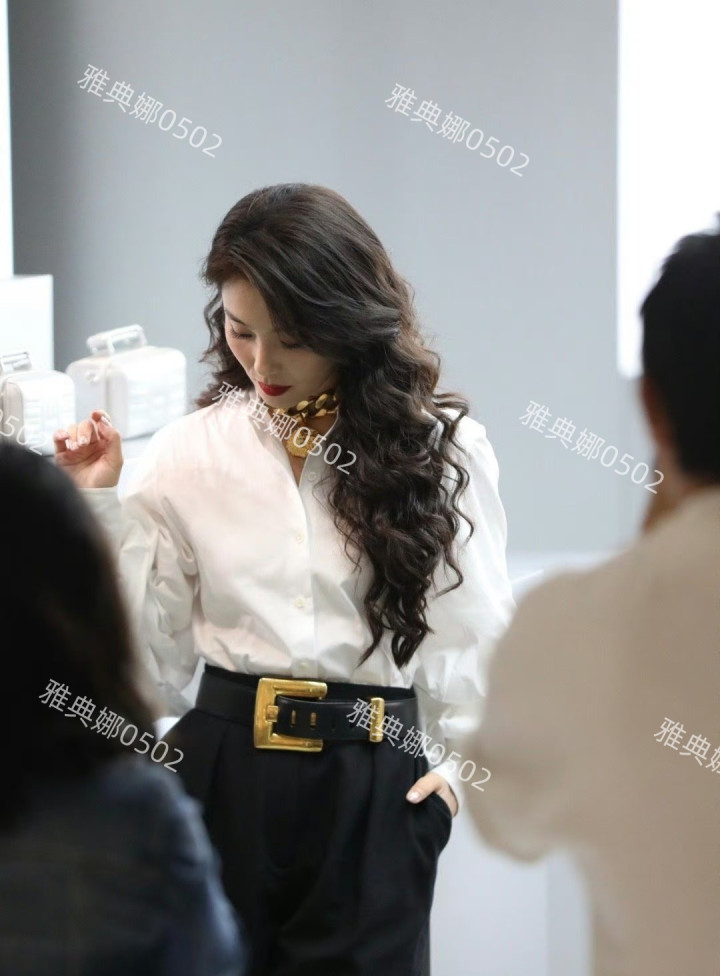刘涛今日现身北京SKP线下活动,以往参加活动总喜欢穿旗袍或者新中式礼服,以一身端庄优雅造型亮相的她,今天换了风格,白衬衫配黑西裤,大波浪大红唇,配上夸张的金色耳环项链,还有金色宽腰带特别干练时尚,走路生风气场十分强大!