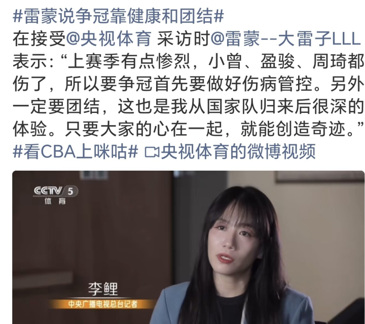 在保证球员身体健康的情况下,又有了团结,那么争冠才更有底气。