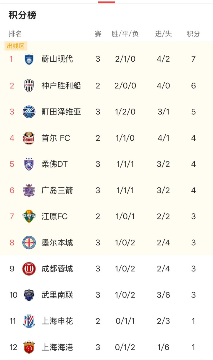 目前中超领头羊3轮过后1平2负积1分,排名垫底;还没有打第3轮的申花也是1分,排名倒数第2;成都队3分排名第9。
