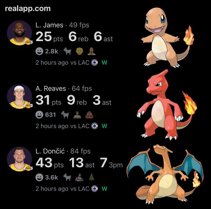 美媒RealSports配图调侃詹姆斯、里夫斯和东契奇分别为小、中、大火龙。